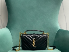 【P1320】YSL College 圣罗兰亮面裂纹迷你邮差包斜挎手提女包20CM
