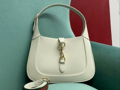 【P1460】Gucci Jackie系列女包 古驰2024新款红绿织带肩带单肩包 白色