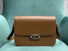 【P1500】圣罗兰2021新款包包 YSL棕色进口真皮方扣Box斜挎方包24CM