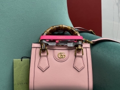 【P1280】古奇包包价格 Gucci Diana小号竹节包斜挎手提包20CM 粉色
