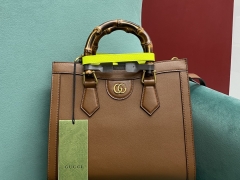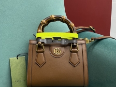 【P1430】古驰女包批发 Gucci新款荧光绑带手提包Diana竹节包27CM 棕色