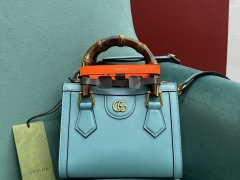 【P1280】Gucci Diana 古奇655661蓝色牛皮的荧光扣带手提竹节包小号20