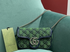 【P1130】Gucci包包货源 古驰446744绿色双G布料Marmont单肩女包