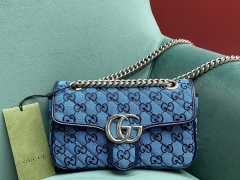 【P1130】Gucci包包官网 古奇446744蓝色双G布链条包Marmont包包22CM