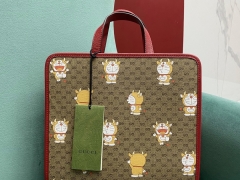 【P830】Gucci包包官网 古奇605614老花帆布叮当猫托特包儿童包28CM