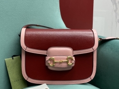 【P1500】Gucci包包官网 古奇1955马鞍包新色深红拼粉色单肩斜挎女包25CM
