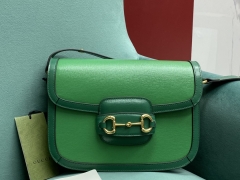 【P1500】古驰热销女包 Gucci1955马衔扣翡翠绿拼色斜挎马鞍包单肩包25CM