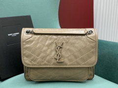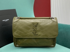 【P1430】一件代发 YSL圣罗兰橄榄绿进口油蜡牛皮NIKi链条单肩包28CM