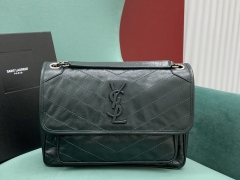 【P1430】厂家直销 YSL圣罗兰墨绿色油蜡牛皮链条女包Niki包包28CM