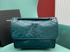 【P1430】圣罗兰包包官网 YSL Niki松石绿进口油蜡牛皮链条单肩包28CM