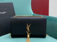 【P1130】厂家直销 YSL圣罗兰百搭单品354119黑色链条斜挎流苏包 金扣