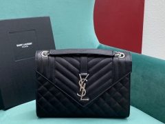 【P1320】厂家直销 YSL圣罗兰487206黑色球纹皮中号信封包单肩风琴包 银扣