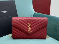 【P1130】广州白云皮具城 YSL圣罗兰经典款Woc链条斜挎女包信封包 红色金扣