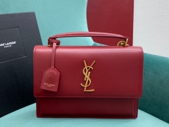 【P1430】YSL包包官网 圣罗兰634723牙签纹日落包斜挎手提女包25CM 红色