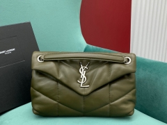【P1430】YSL LOULOU PUFFER系列 圣罗兰绿色绗缝小羊皮云朵包单肩女包 银扣