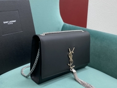 【P1130】圣罗兰包包官网 YSL经典款354119黑色银扣流苏包 盖底是猄皮