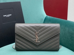 【P1130】厂家直销 YSL圣罗兰灰色球纹Monogram信封包链条斜挎女包 银扣