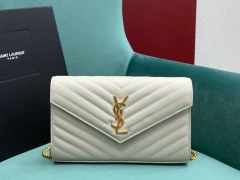 【P1130】圣罗兰包包批发 YSL Monogram白色球纹牛皮链条信封包 银扣