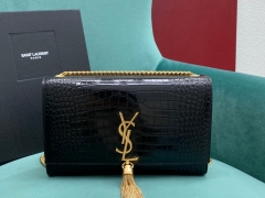 【P1130】YSL包包价格 圣罗兰354119鳄鱼纹女包斜挎流苏包晚宴手包 金扣
