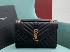 【P1130】YSL女包批发 圣罗兰迪丽热巴同款黑色球纹Monogram信封包 金扣