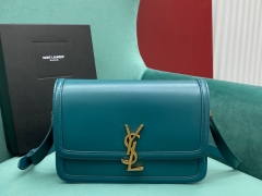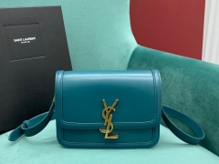 【P1500】圣罗兰女包批发 YSL Box蓝绿色平纹牛皮单肩斜挎方包中号23CM
