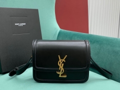 【P1500】YSL包包价格 圣罗兰经典标志性金色字母扣牛皮Box包斜挎女包 黑色
