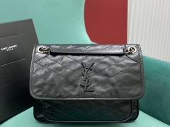 【P1470】YSL包包价格 圣罗兰633158皱纹牛皮复古Niki链条单肩包28CM