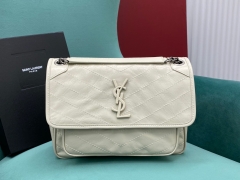 【P1430】一件代发 YSL圣罗兰奶白色油蜡牛皮Niki链条单肩女包28CM