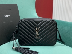 【P1050】YSL包包价格 圣罗兰经典款V纹单肩斜挎相机包 黑色银扣