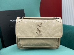 【P1430】YSL Niki 圣罗兰经典款抓纹油蜡牛皮链条单肩女包28CM 浅杏色