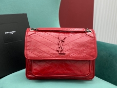 【P1430】圣罗兰包包价格 YSL Niki红色抓皱纹油蜡牛皮链条单肩女包28CM