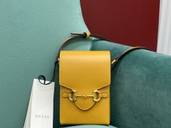 【P1020】古驰新款包包 Gucci黄色原厂牛皮1955马衔扣手机包盒子包17CM