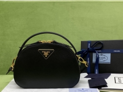 【P1280】厂家直销 Prada普拉达76659黑色十字纹牛皮迷你手提包斜挎包21CM