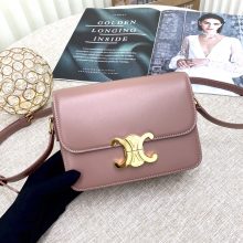 思琳新款女包 Celine Triomphe复古风平纹牛皮小方包斜挎包18CM 古典玫瑰粉