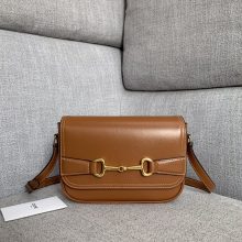 思琳新款女包 Celine Crecy复古191373黄褐棕平纹牛皮马衔扣斜挎包22CM