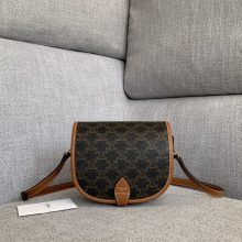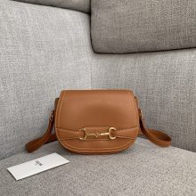 思琳包包价格 Celine新款早春系列191363黄褐棕进口牛皮马鞍包斜挎包17CM