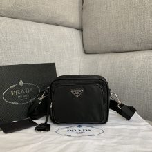 Prada明星同款包包 普拉达男女同款91222黑色尼龙布相机包斜挎包16.5CM