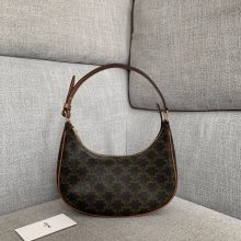 Celine新款包包 思琳193953老花帆布腋下包手拎单肩女包23.5CM 棕色