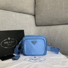 普拉达新款包包 Prada91222蓝色进口尼龙布男女通用单肩斜挎相机包16.5CM
