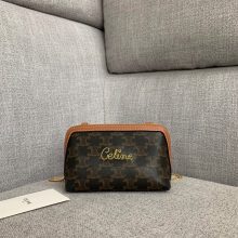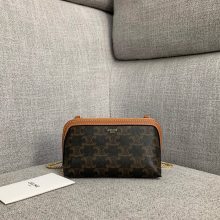 思琳包包官网 Celine老花系列TRIOMPHE帆布配棕边链条小包斜挎包15CM