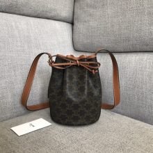 广州白云包包批发 Celine思琳191142印花老花帆布抽绳小水桶包21.5CM 黄褐棕