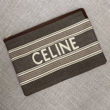 厂家直销 Celine思琳100802灰/棕麻布条纹复古元素新品手拿包34CM
