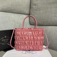 一件代发 Prada普拉达91321褶皱手拎包手提包23CM 原厂进口尼龙布粉色