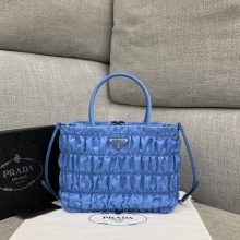 普拉达热销女包 Prada新款91321蓝色皱褶设计进口尼龙布手提包单肩包23CM