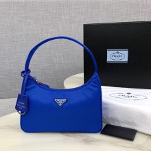 Prada热销女包 普拉达2020年新款91515电光蓝原厂尼龙布单肩包手拎包23CM