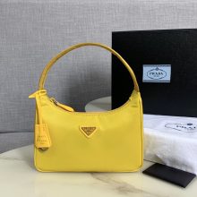 普拉达女包批发 Prada Hobo原厂尼龙布小鸡黄腋下包手拎单肩女包23CM