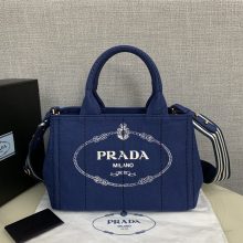 普拉达包包代理货源 Prada梨花同款91329蓝色帆布包手提斜挎多用女包29CM