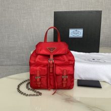 普拉达热销女包 Prada进口尼龙布链条肩带斜挎小包手提包17CM 81155红色