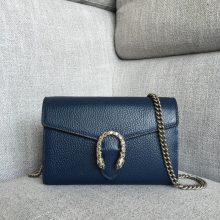 广州包包批发 Gucci古驰经典款荔枝纹马刺扣虎头包小号酒神包20CM 蓝色