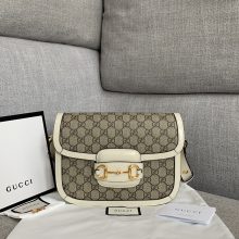 古奇热销女包 Gucci新款白色1955马鞍包复古单肩斜挎包包25.5CM